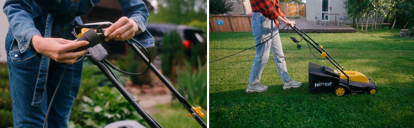 Питаются от сети через шнур. Это легкие и доступные модели, идеально подходящие для небольших участков с ровной поверхностью.