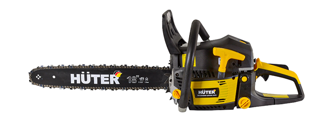 Бензопила HUTER оборудована инерционным тормозом, который срабатывает при резком отскоке инструмента и предохраняет от получения травмы. Широкое основание внизу рукоятки и цепеуловитель обеспечивают безопасность оператора в случае разрыва цепи.