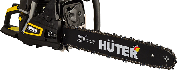 Бензопила HUTER имеет все необходимые приспособления, обеспечивающие безопасность работы. Инерционный тормоз срабатывает при обратном ударе, останавливая вращение цепи. Широкая нижняя часть рукоятки и цепеуловитель оберегают руку в случае разрыва цепи.