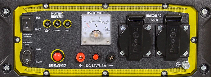 Наличие двух розеток переменного тока позволяет подключать к инверторному генератору HUTER одновременно несколько потребителей. Защитные крышки на розетках препятствуют проникновению влаги и пыли при эксплуатации оборудования в уличных условиях.