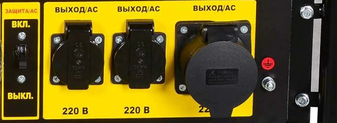 Для безопасной эксплуатации предусмотрены системы защиты от перегрузок и короткого замыкания. Внешняя рама из стальной трубы оберегает внутренние узлы от механических повреждений, служит устойчивой опорой. Пластиковые крышки розеток защищают разъемы от попадания воды и пыли.