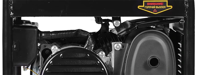 Амортизационные вставки эффективно гасят вибрации. Глушитель двигателя снижает шум. Уровень звукового давления во время работы электрогенератора не превышает 67 дБ.