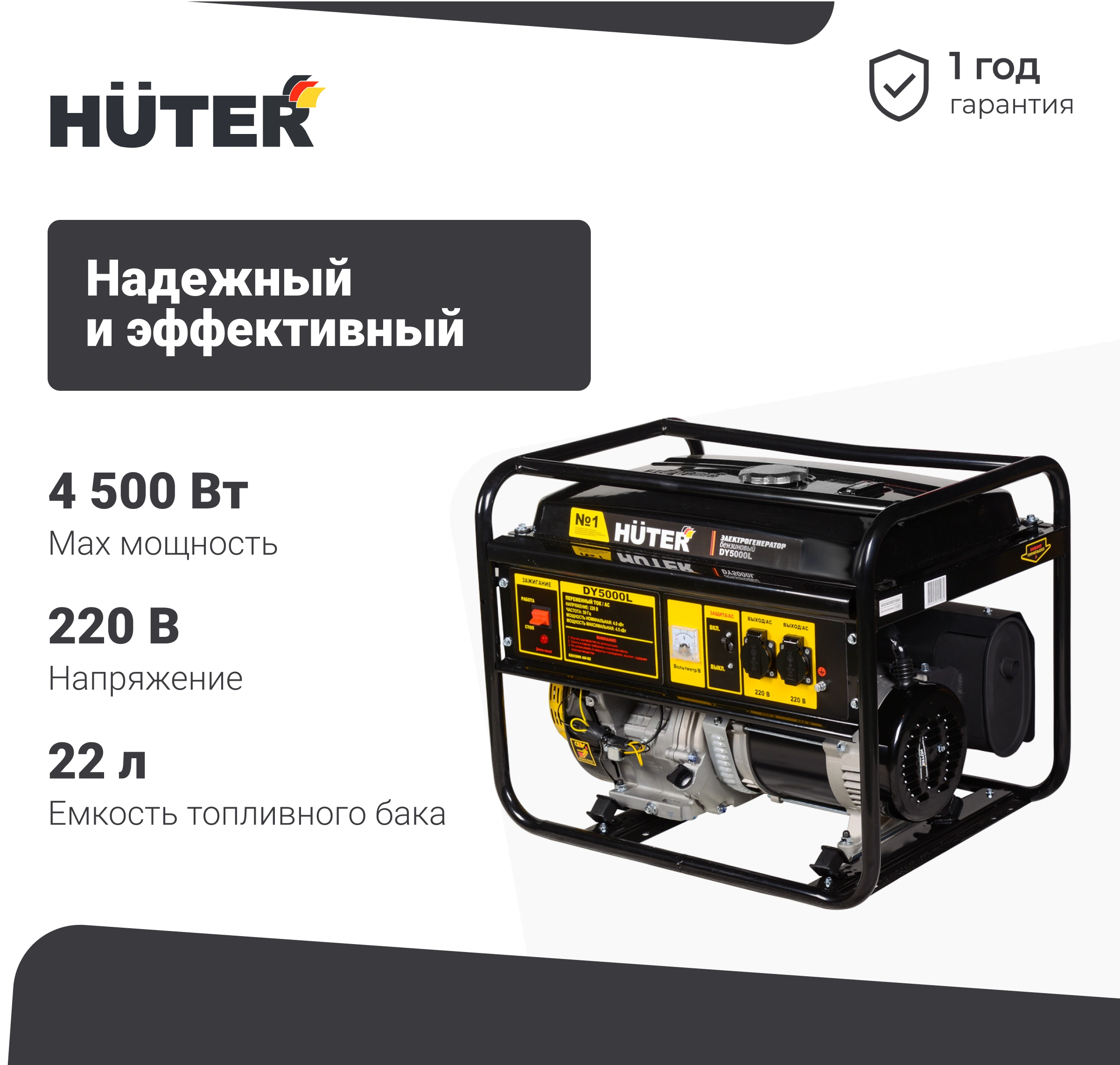 Бензиновый генератор HUTER DY5000L с максимальной мощностью 4,5 кВт — это надежное и простое в управлении решение для обеспечения резервного и аварийного электроснабжения. Сочетание высоких технических характеристик, продуманного дизайна и удобства использования делают эту модель оптимальным выбором для частного дома, дачи, мастерской или строительных работ.