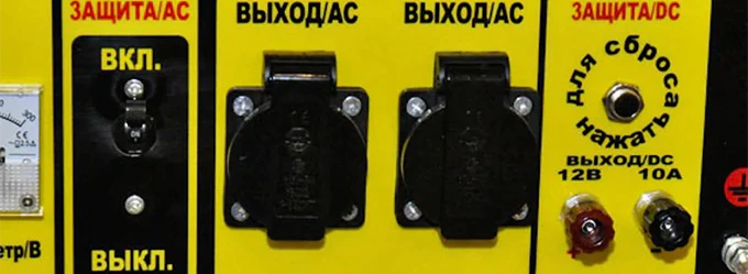 - Пластиковые крышки предохраняют розетки от проникновения влаги и пыли, когда электрогенератор не используется.