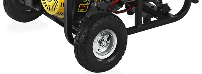 Бензиновый генератор HUTER поставляется с аккумуляторной батареей для электростартера. Вам не придется ничего докупать. В комплект также входят колеса и ручка для удобства перемещения по рабочей площадке.