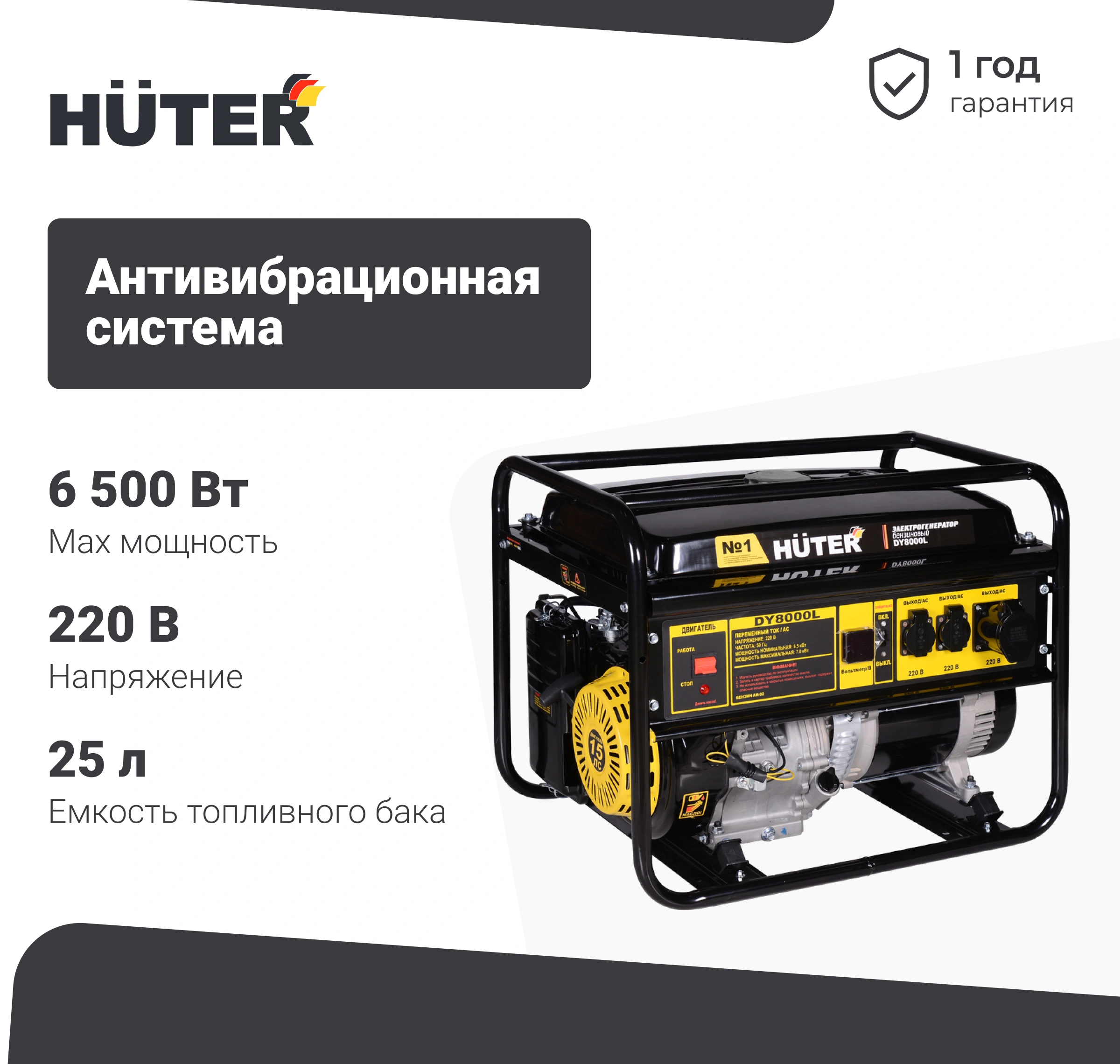 - Медная обмотка альтернатора обеспечивает устойчивость электрогенератора HUTER DY8000L к повышенным нагрузкам.