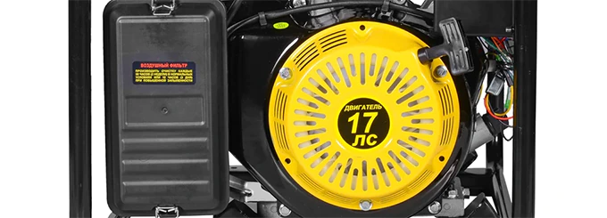 Автоматическая система защиты от перегрузки и короткого замыкания гарантирует безопасную работу генератора и подключенного оборудования. Система защиты от низкого уровня масла автоматически отключает двигатель при его критическом снижении.