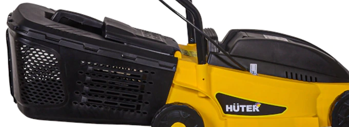 Вся скошенная трава аккуратно собирается в травосборник электрической газонокосилки HUTER. Изготовленный из пластика жесткий контейнер емкостью 28 литров удобно обслуживать: отсоединять, опорожнять и промывать струей воды из шланга.
