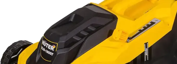 - Кнопка блокировки запуска предотвращает случайное включение режущей системы косилки HUTER ELM 1800T.