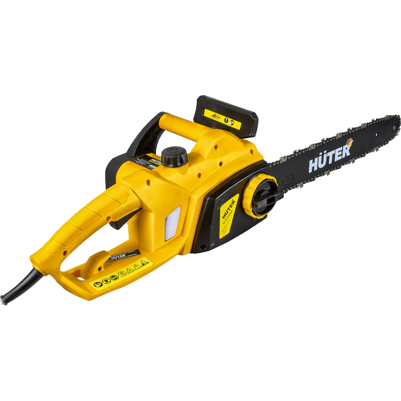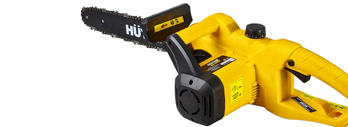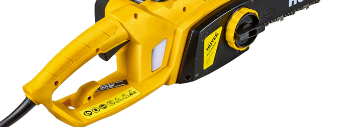 - Регулировочный винт на корпусе электропилы Huter ELS-2200P позволяет быстро менять натяжение цепи.
