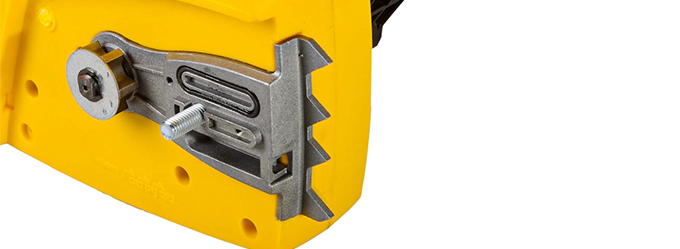 Инерционный тормоз мгновенно останавливает цепь при отскоке или потере контроля над инструментом. Кнопка блокировки запуска предотвращает непреднамеренное включение.
