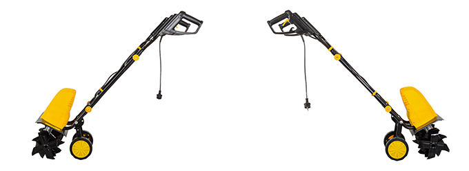Специальный держатель позволяет закрепить провод, чтобы избежать его случайного отсоединения. Пока пусковой рычаг на рукоятке нажат, фрезы вращаются. Как только контроль над машиной теряется, происходит отключение двигателя.