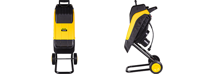 - Опорная стальная рама с колесами упрощает перемещение измельчителя веток HUTER ESH 2500 по рабочей площадке.