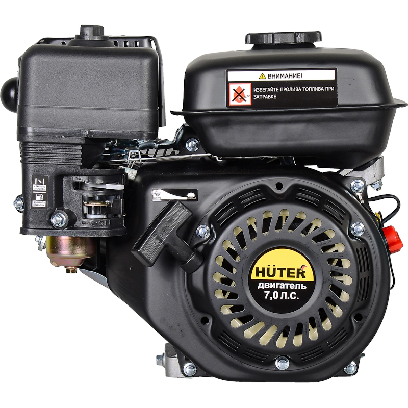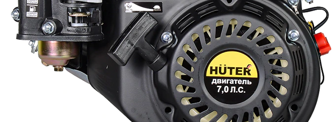 Бензиновый двигатель HUTER имеет продуманный дизайн для удобства обслуживания. Воздушный фильтр легко снимать для очистки благодаря прямому доступу. Крышка отсека снимается без применения инструментов. В широкую горловину топливного бака удобно заливать горючее.