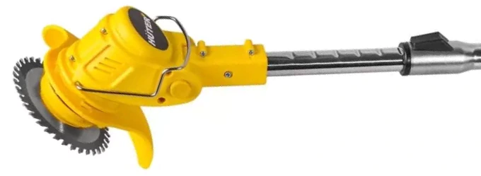 Садовый инструмент снабжен механизмом поворота режущей головки. Поверните блок с двигателем и рабочей насадкой под нужным углом, чтобы аккуратно подровнять траву вдоль бордюра или забора. Ограничительная скоба предохраняет от случайного среза растений.