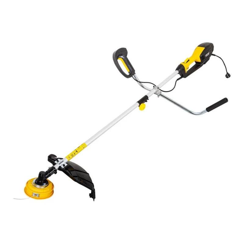 - Двигатель мощностью 2000 Вт обеспечивает эффективное скашивание как газонной травы, так и кустарниковой поросли.