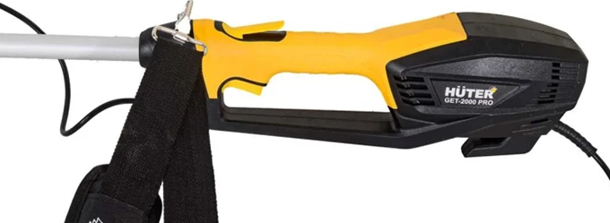 Электротриммер Huter имеет удобную для пользователя конструкцию. Регулируя положение рукоятки и длину штанги, вы легко настроите его под себя, а используя ремень, снизите нагрузку на спину и руки. Кнопки управления вынесен на рукоятку велосипедного типа.