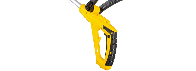 Для удлинения лески достаточно слегка ударить триммерной головкой о землю, не заглушая двигатель. Для удобства предусмотрены две рукоятки с нескользящим покрытием: основная Р-образная с большой клавишей пуска и дополнительная D-образная. Триммер удобен для подравнивания газонной травы в узких и труднодоступных местах: под скамейками, качелями, вокруг клумб, вдоль дорожек и заборов.