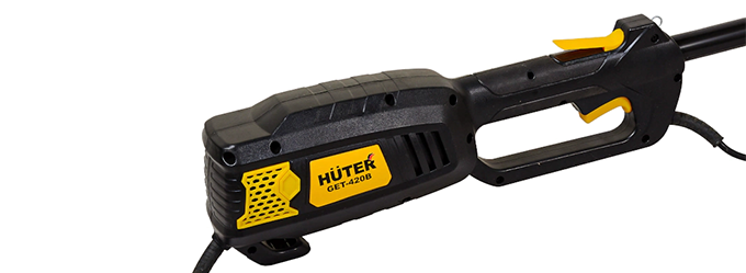 Мощность двигателя Huter GET-420B составляет 1700 Вт. Это самый высокий показатель в линейке бытовых электрических триммеров бренда. Верхнее расположение мотора позволяет косить даже влажную траву.