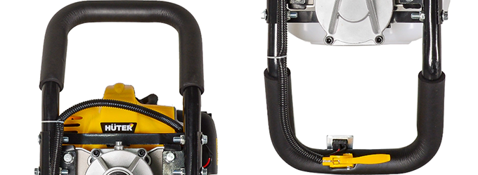 - Амортизаторы на рукоятках гасят вибрации и повышают удобство работы с бензобуром HUTER GGD-300.