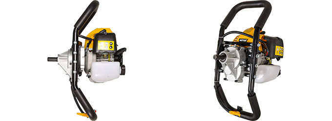 - Амортизаторы на рукоятках гасят вибрации и повышают удобство работы с мотобуром бензиновым HUTER GGD-52.