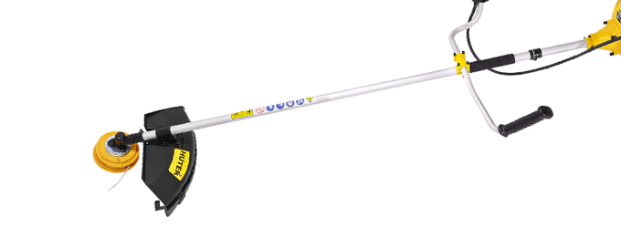 Блокиратор курка газа предотвращает случайный запуск триммера. Пластиковый кожух в нижней части штанги защищает от вылетающих частиц травы и камней. Очки, входящие в комплект, обеспечивают дополнительную защиту для глаз.