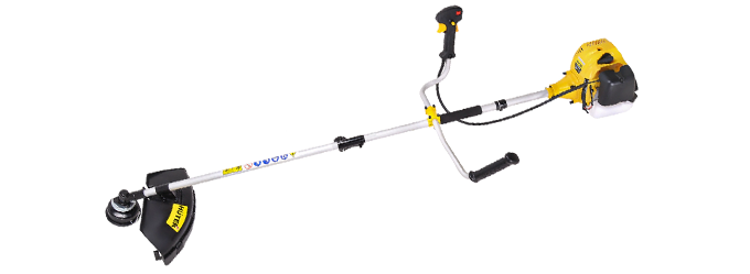 - В зависимости от сложности задачи, на бензиновый триммер Huter можно установить катушку с леской или трехлопастной металлический нож.