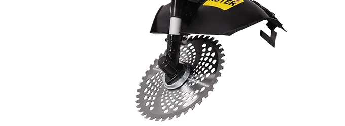 Бензиновый триммер справляется с разными видами растительности благодаря сменным насадкам. Леска с шириной захвата 46 см эффективно скашивает газонную траву на открытых пространствах. Полуавтоматическая катушка позволяет быстро выпускать новый отрезок лески при износе – достаточно слегка ударить ей о землю во время работы. Металлический диск 40ТР с твердосплавными напайками применяется на запущенных участках. Он легко перерезает жесткие стебли бурьяна и молодые побеги кустарника, где леска не справляется.