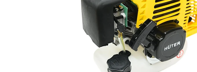 Двигатель в триммере HUTER GGT-520T расположен в верхней части, штанга прямая. Такая компоновка обеспечивает хороший баланс и позволяет косить в труднодоступных местах. Двухтактный мотор работает на смеси бензина и масла. Электронная система зажигания способствует стабильному запуску двигателя независимо от погодных условий. Полупрозрачные стенки топливного бака позволяют вовремя заметить снижение уровня горючего.