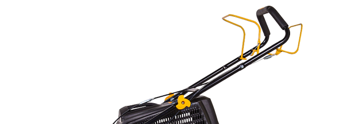 Высоту рукоятки можно отрегулировать под свой рост. Двигатель легко запускается с помощью ручного стартера. Чтобы включить вращение ножа, просто прижмите рычаг привода к основной рукоятке. Уровень среза травы регулируется путем перестановки одного рычага.