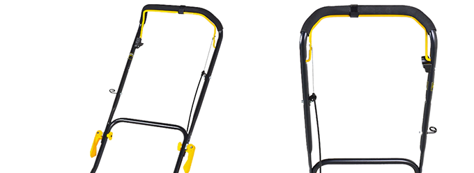 Функция бокового выброса обеспечивает удобство при скашивании высокой растительности. Трава откидывается в сторону и не путается под ногами. Ручку стартера можно зафиксировать на рукоятке, чтобы не наклоняться при очередном запуске двигателя.