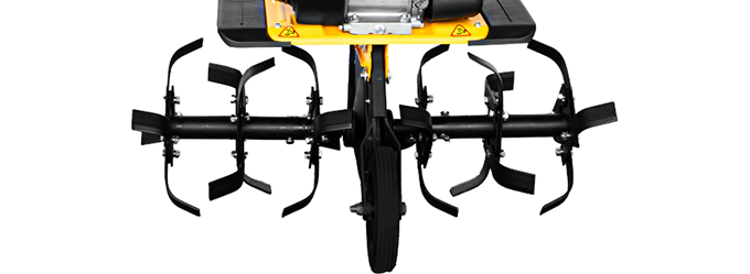 Аппарат комплектуется сборными стальными фрезами. Ширину обработки можно регулировать от 30 до 85 см путем установки дополнительных звеньев. Острые лезвия специальной формы легко заглубляются и тщательно рыхлят почву.