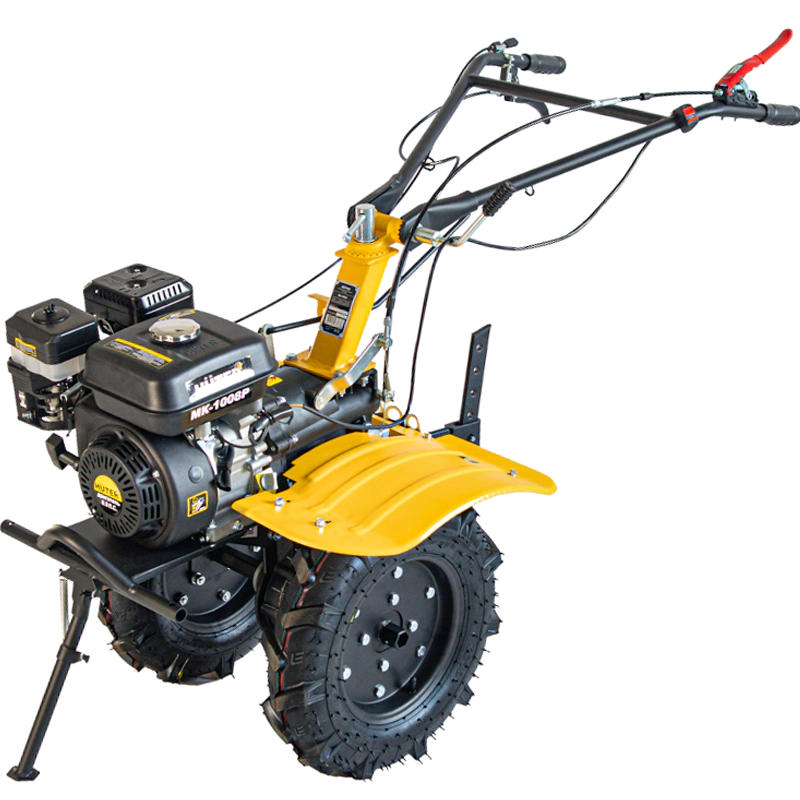 Рычаги и рукоятки для управления мотоблоком HUTER удобно расположены на рулевой раме. Переключатель передач позволяет выбрать оптимальную скорость в зависимости от состояния почвы. Режим заднего хода облегчает высвобождение увязшей в грунте машины. Широкие крылья над фрезами защищают от вылета земли в сторону оператора.