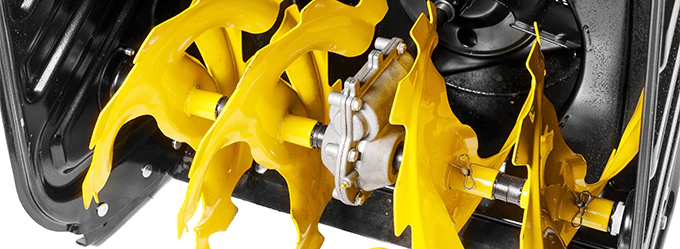 Стальной шнек с острыми зубьями перемалывает большие сугробы и обледеневшие снежные завалы. После прохода снегоуборщика остается вычищенная полоса шириной 56 см.