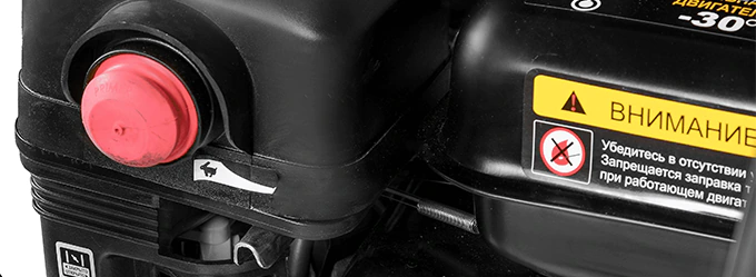 - Четырехтактный двигатель мощностью 6,5 л.с., оборудованный ручным стартером.