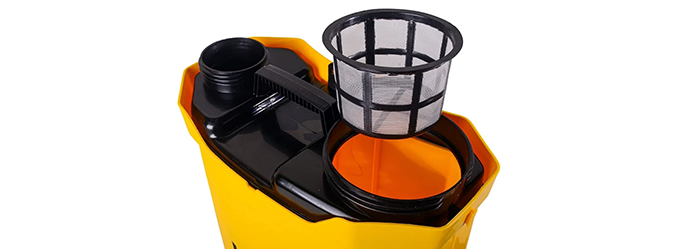 Вместительная емкость изготовлена из легкого и устойчивого к химикатам пластика. Раствор удобно заливать через широкую горловину. Отдельный резервуар позволяет хранить пестициды изолированно от других компонентов.