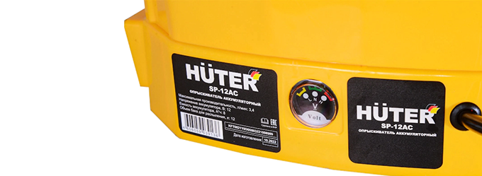 - Встроенный в корпус опрыскивателя HUTER SP 12AC индикатор оборудован цветными светодиодами, сигнализирующими о состоянии аккумулятора и возможных неисправностях.