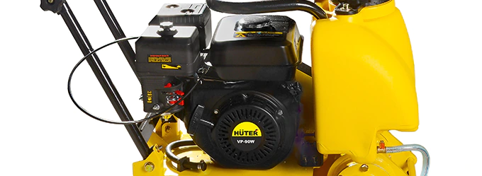 - Антивибрационные элементы на рукоятке обеспечивают комфортную работу с виброплитой HUTER VP 90W.