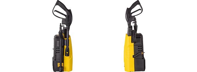 Минимойка отличается компактными размерами и малым весом. Ее удобно перевозить в багажнике автомобиля, переносить за верхнюю ручку и устанавливать в нужном месте. Пятиметровый шланг обеспечивает свободу движений.