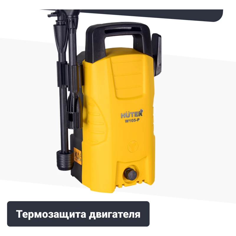 - Водяная помпа изготовлена из алюминиевого сплава, не подвержена коррозии, обеспечивает продолжительный срок службы мойки HUTER W105 P.