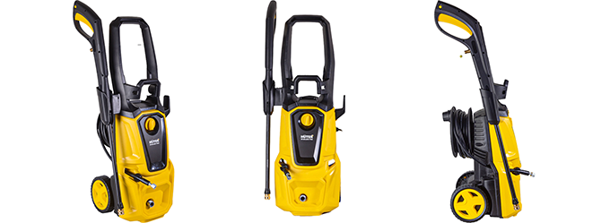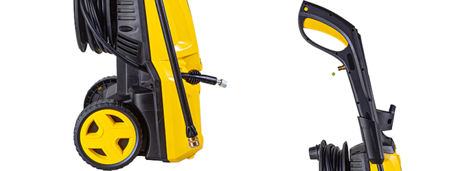 Продуманная конструкция с широкой рукояткой и колесами облегчает перемещение мойки по рабочей зоне, а длинный 8-метровый шланг высокого давления дает свободу движений. После работы шланг можно компактно свернуть и закрепить на корпусе с помощью барабана.