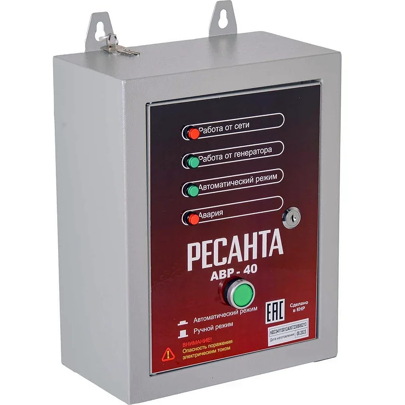 Панель автоматического ввода резерва для электрогенераторов АВР-40 Ресанта поддерживает непрерывный режим работы электрооборудования. Осуществляет запуск генератора при отключении электроэнергии в сети, а при появлении электричества отключает его. АВР осуществляет постоянный мониторинг напряжения во внешней сети и запускает генератор при достижении показателя 100 В. Работает без перебоев при температуре окружающей среды от -20° до -60° C.